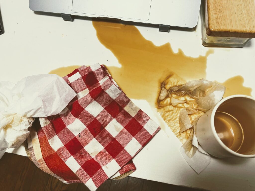 朝っぱらから派手にコーヒーをぶちまけた