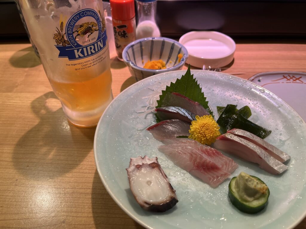 ホテルに向かう途中の焼き鳥屋で一杯やっていく