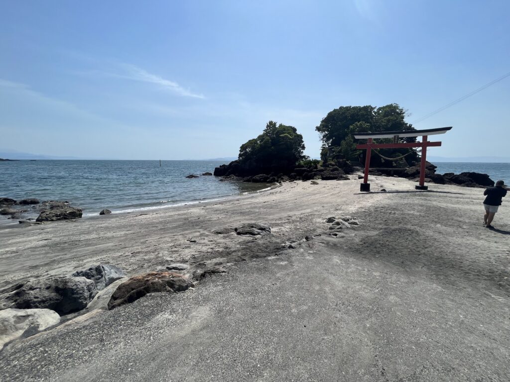 海に突き出た神社で、満潮時には渡れなくなるという。