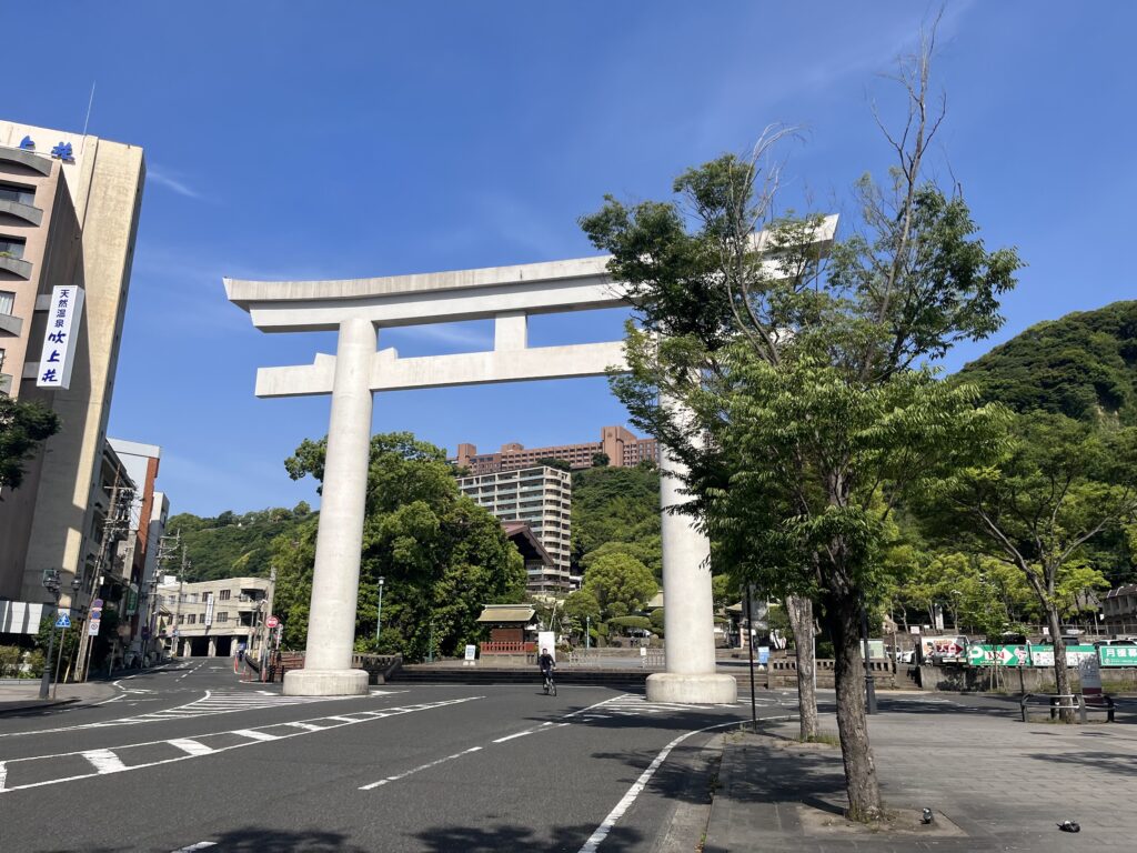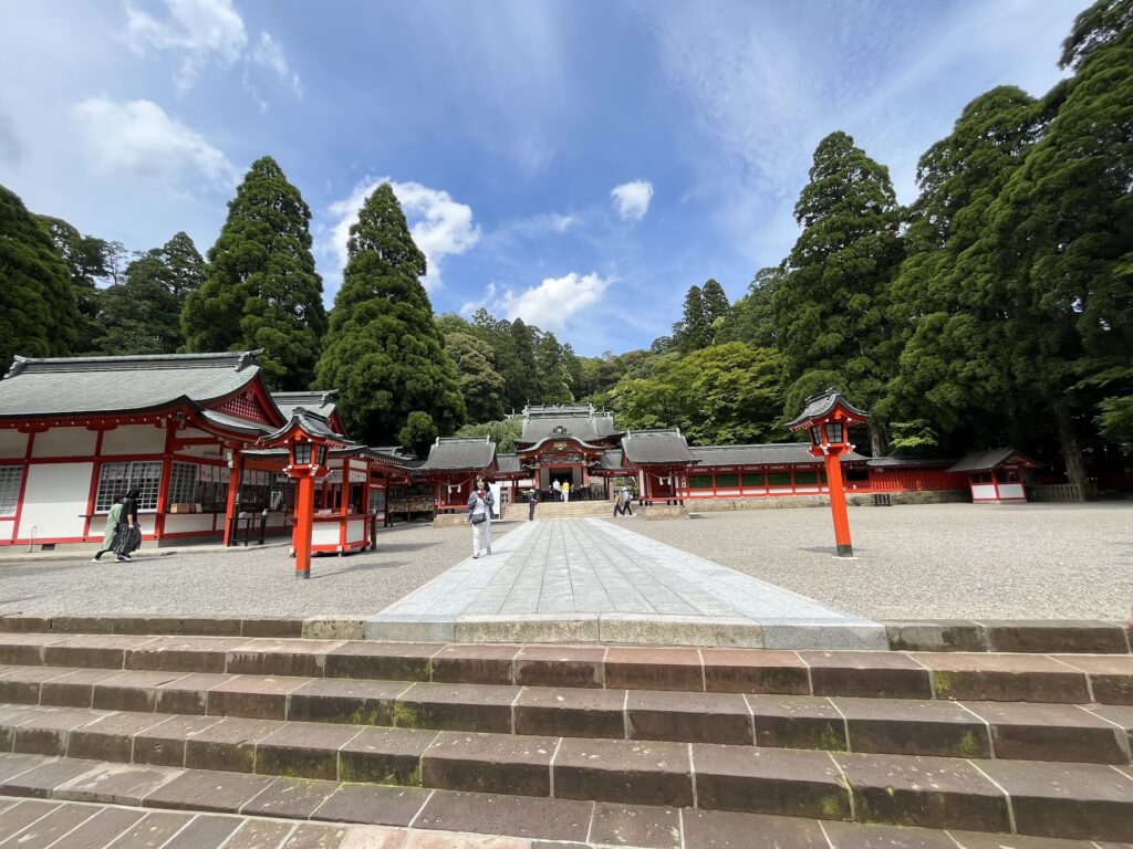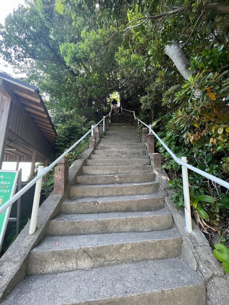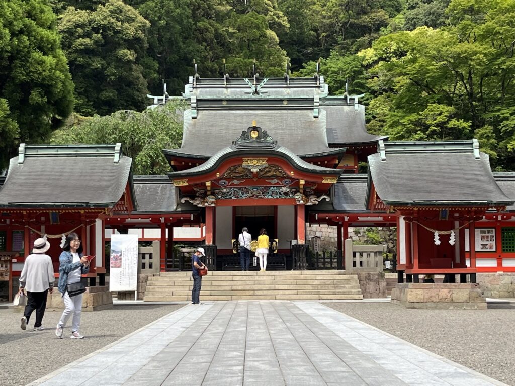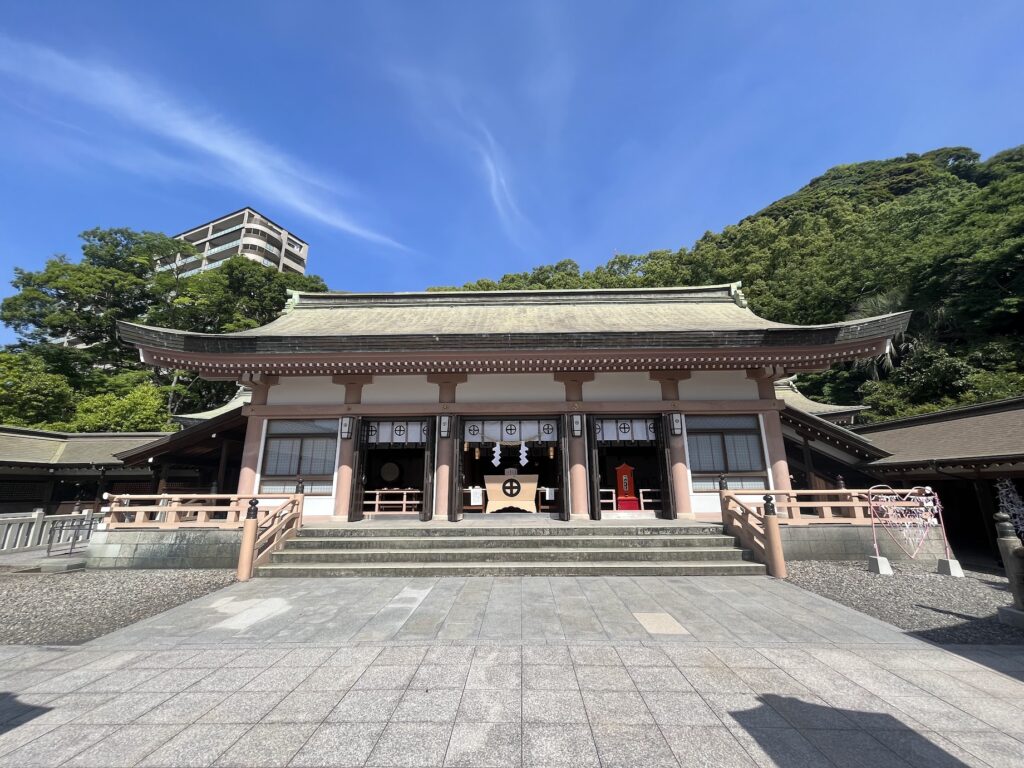 神社と海の色がなんかミスマッチで新鮮だった