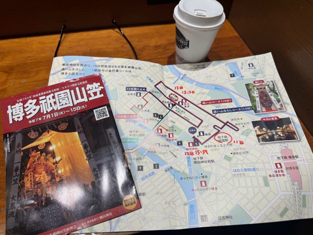 ちょうど祇園山笠の時期なので、駅の案内所でどこに行けば見られるかを尋ねると、親切に教えてくれた。
