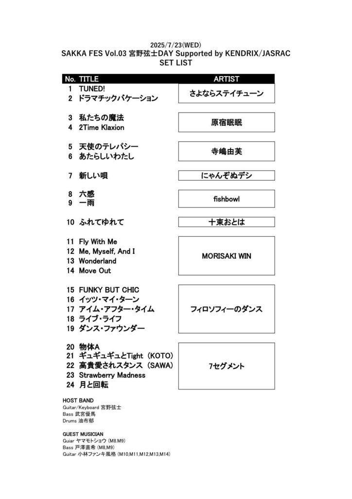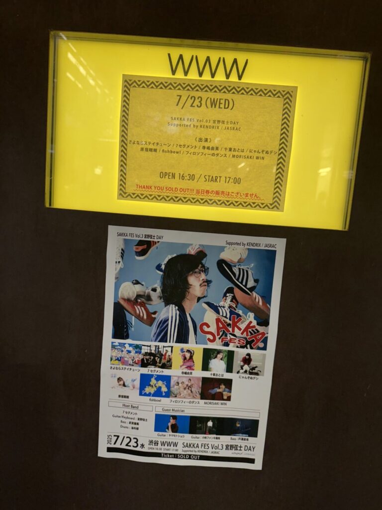 Shibuya WWWで「SAKKA FES Vol.3 宮野弦士DAY」。
