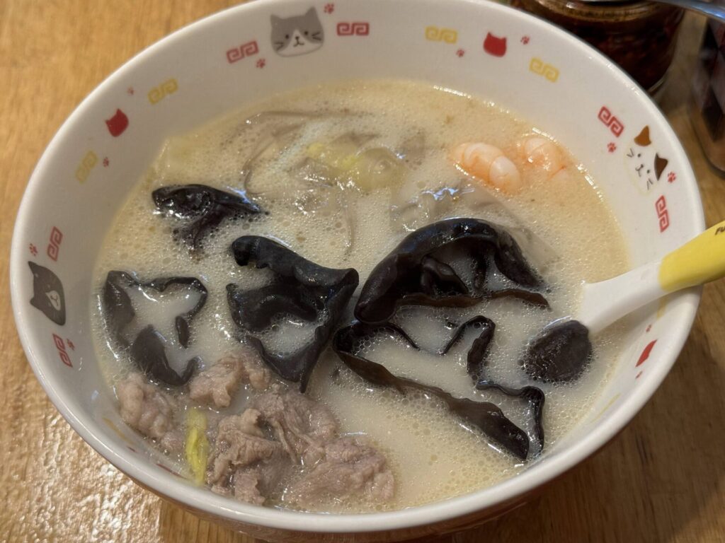 辛さが選べる。辛さゼロを選んだので単なる白湯スープである。