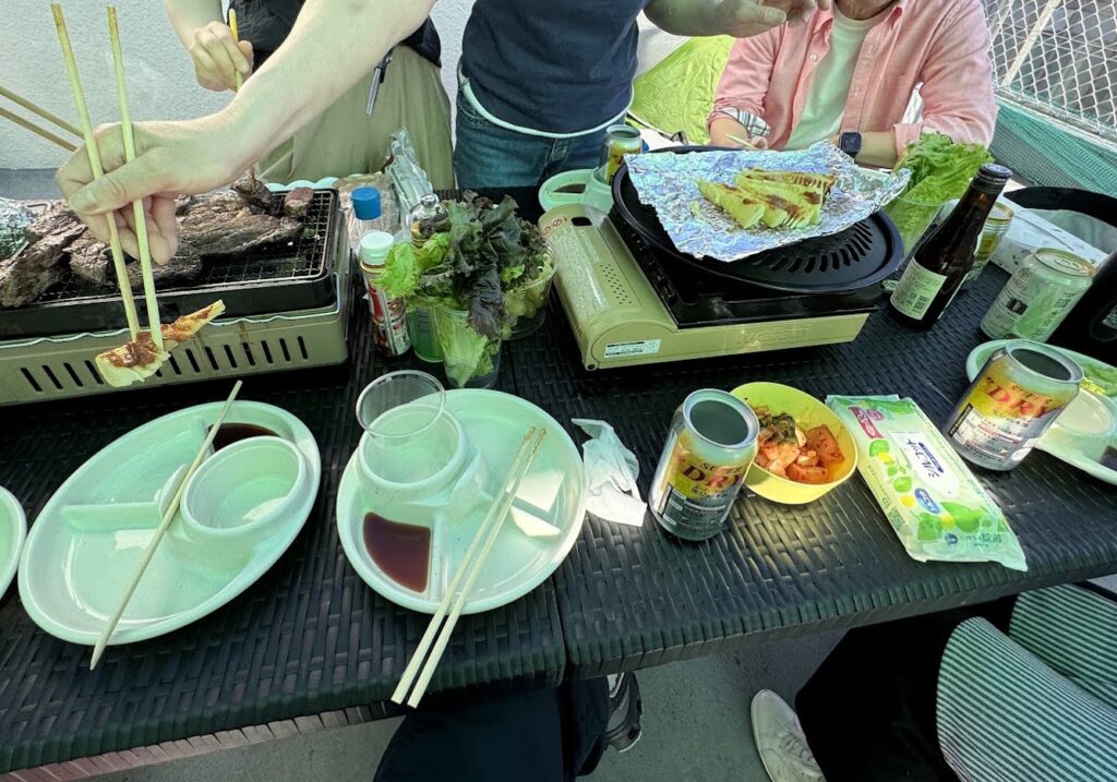 実家の屋上で家族でBBQ