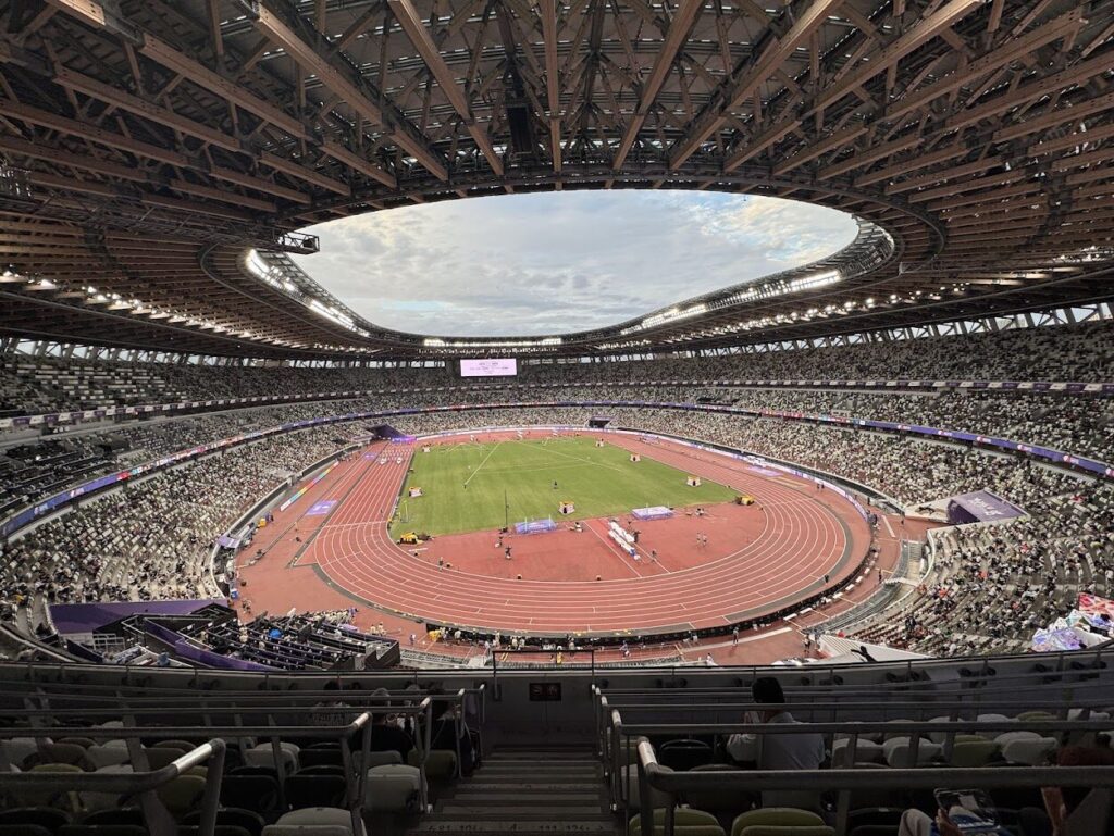 世界陸上は昔に見た事があるような、ないような、ちょっと記憶が定かではないが、ともあれ新しくなった国立競技場に行くのは初めてだ。